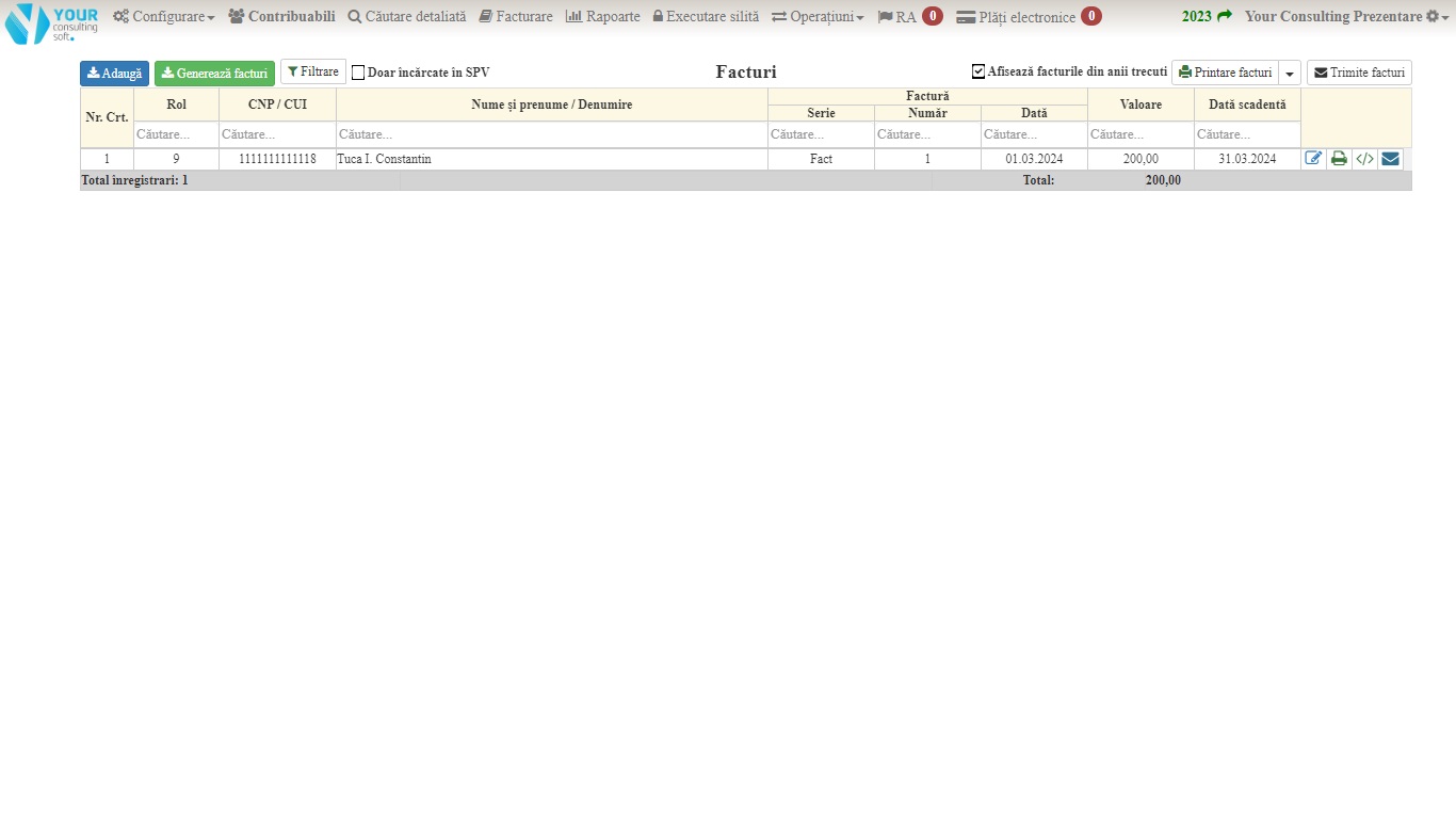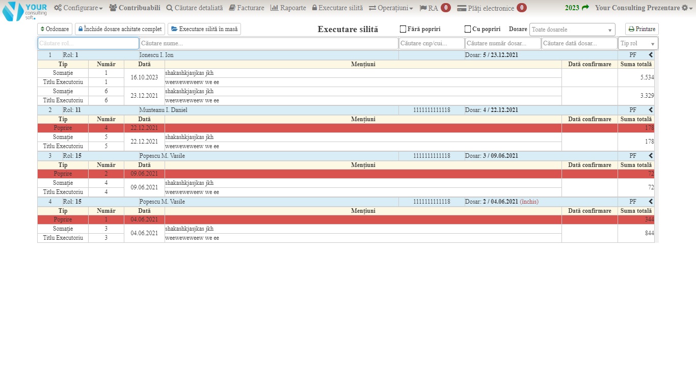 Se pot deschide dosare penru fiecare ROL in parte, sau exista o secțiune unde putem genera după anumite criterii somații și titluri tutror contribuabililor.